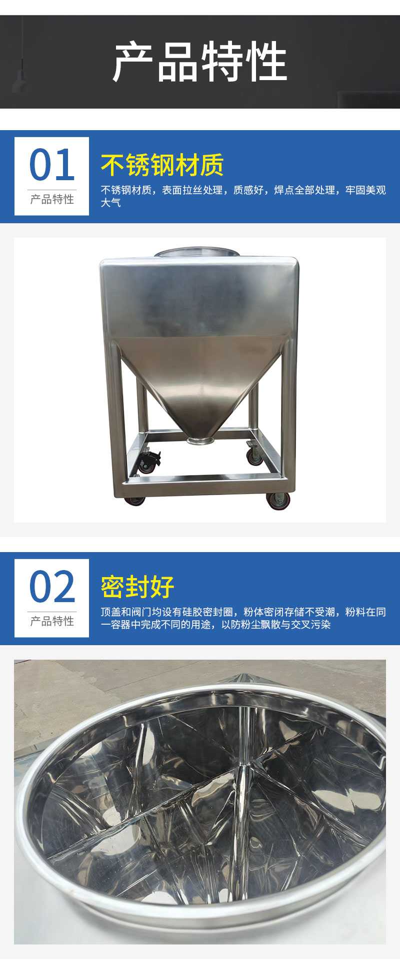方形周轉料倉不銹鋼粉體儲罐可移動式方形移動料倉方形料倉粉體周轉罐