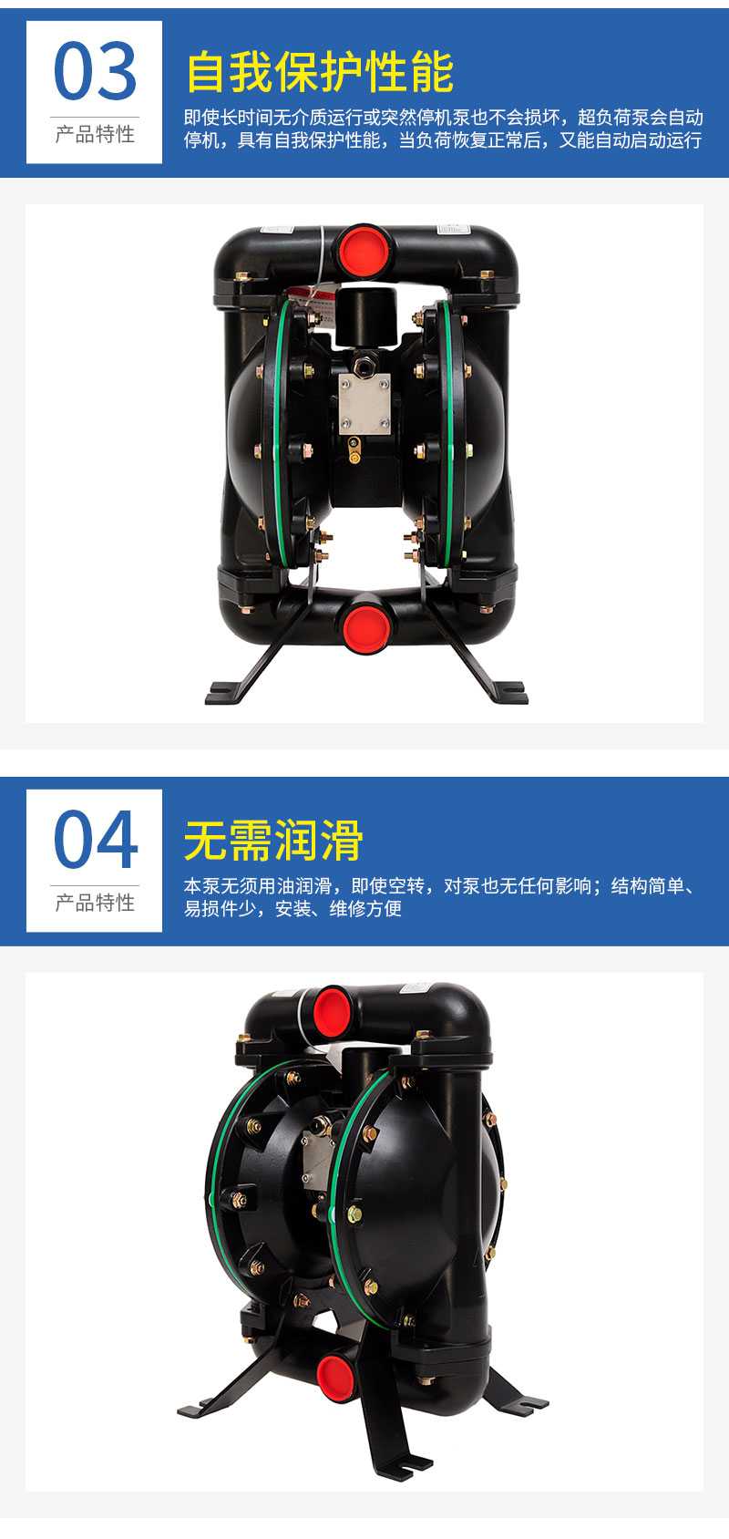 (1)泵不會過熱:壓縮空氣與電機為動力,在排氣時是一個膨脹吸熱的過程,氣動泵工作時溫度是降低的,無有害氣體排出。
