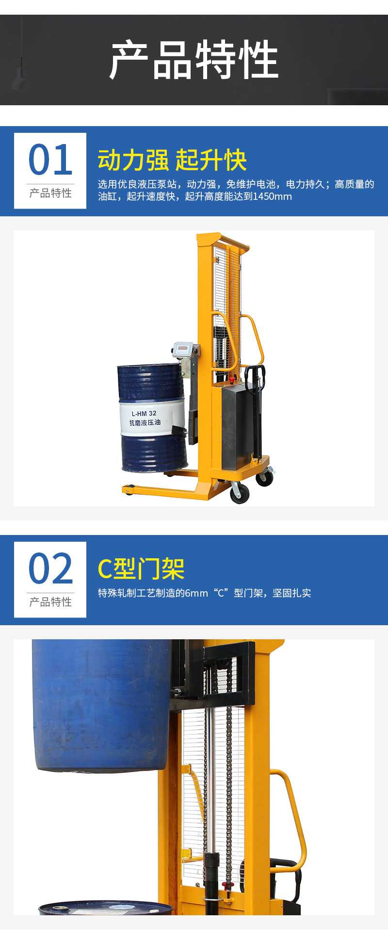 ★選用優質液壓泵站,動力強勁,免維護電池,電力持久。